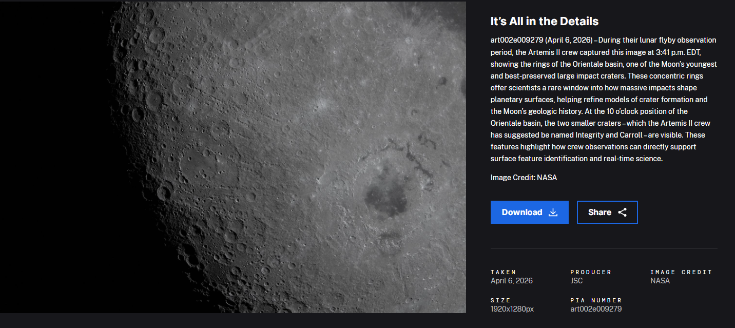 Artemis II was the first crewed mission under NASA’s Artemis lunar exploration program and marked humanity’s first return to the vicinity of the Moon since the Apollo 17 mission in 1972.