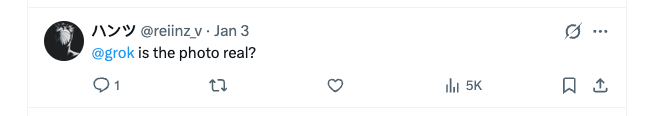 10 comments (26.3%) asked for confirmation from authoritative sources. Examples include: “@grok is the photo real?” and “@grok no me sale ese tweet y esa imagen de maduro es real?”