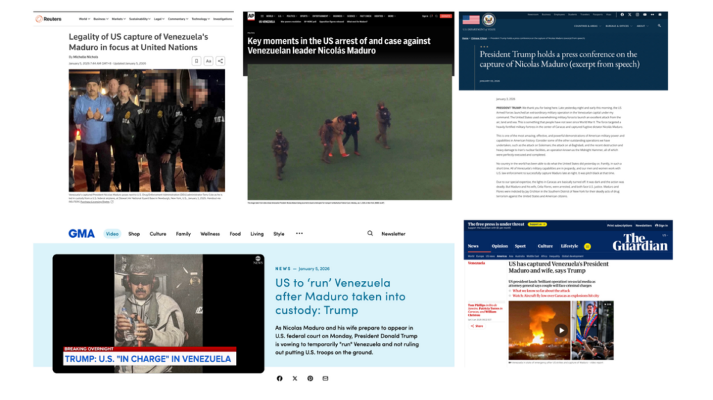 In early January, following reports that Venezuelan President Nicolás Maduro had been arrested, multiple images were widely shared on social media. While some have since been verified to be false, they continue to circulate even after being debunked by authoritative sources. Such disinformation misleads the public and undermines serious political discourse. To safeguard the public’s right to accurate information and clarify the facts, Fact Hunter launched this fact-checking investigation.