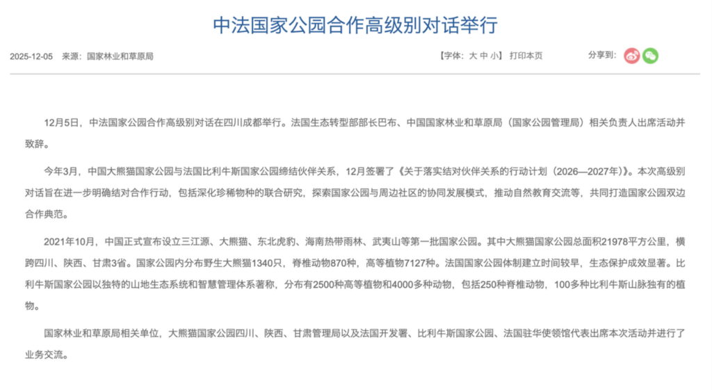 In recent years, the scope of cooperation has expanded from the study of individual pandas to the broader protection of entire ecosystems. A prime example is the sister-park relationship between the national parks of China and France. This shift signifies a new phase for “Panda Diplomacy”—one characterized by sustainable development that is firmly rooted in scientific research and conservation while supporting China’s overarching national diplomatic strategy.