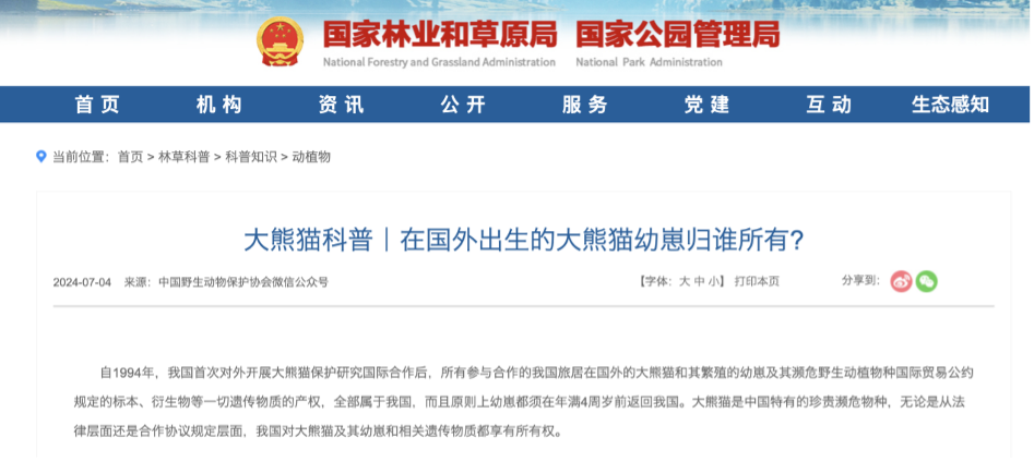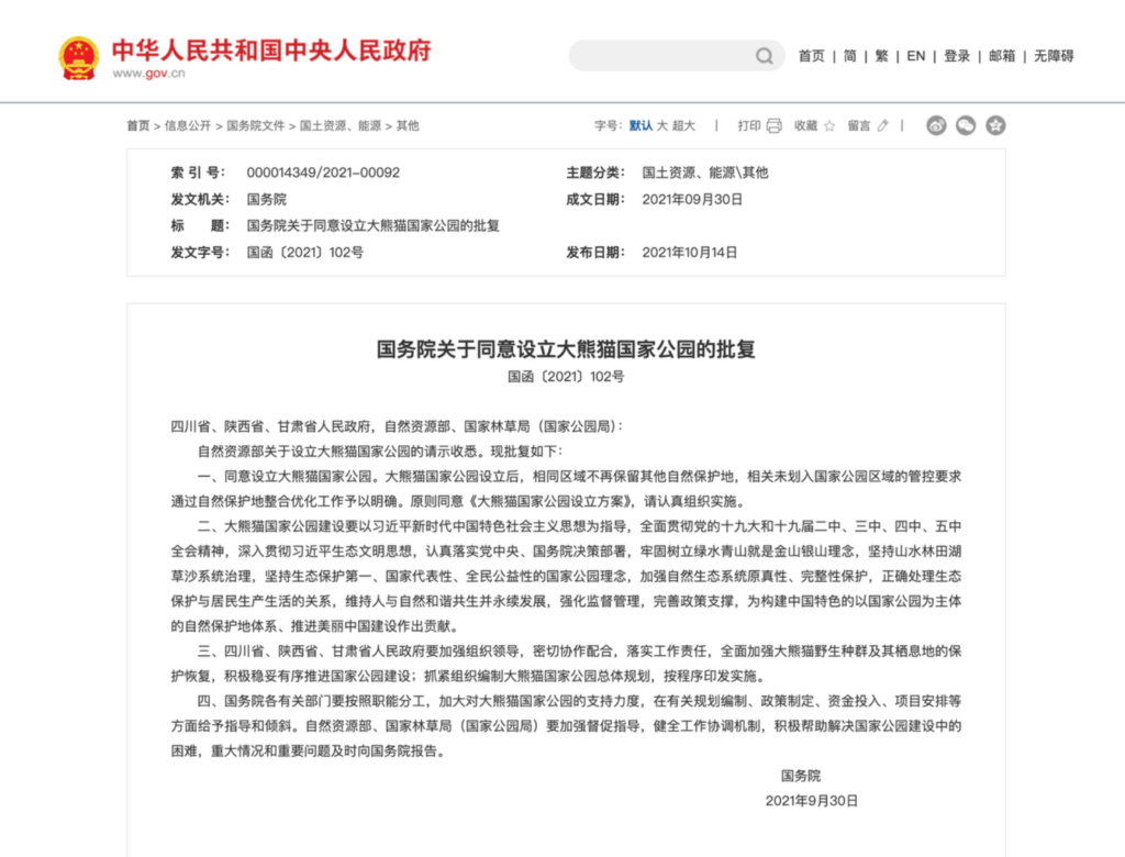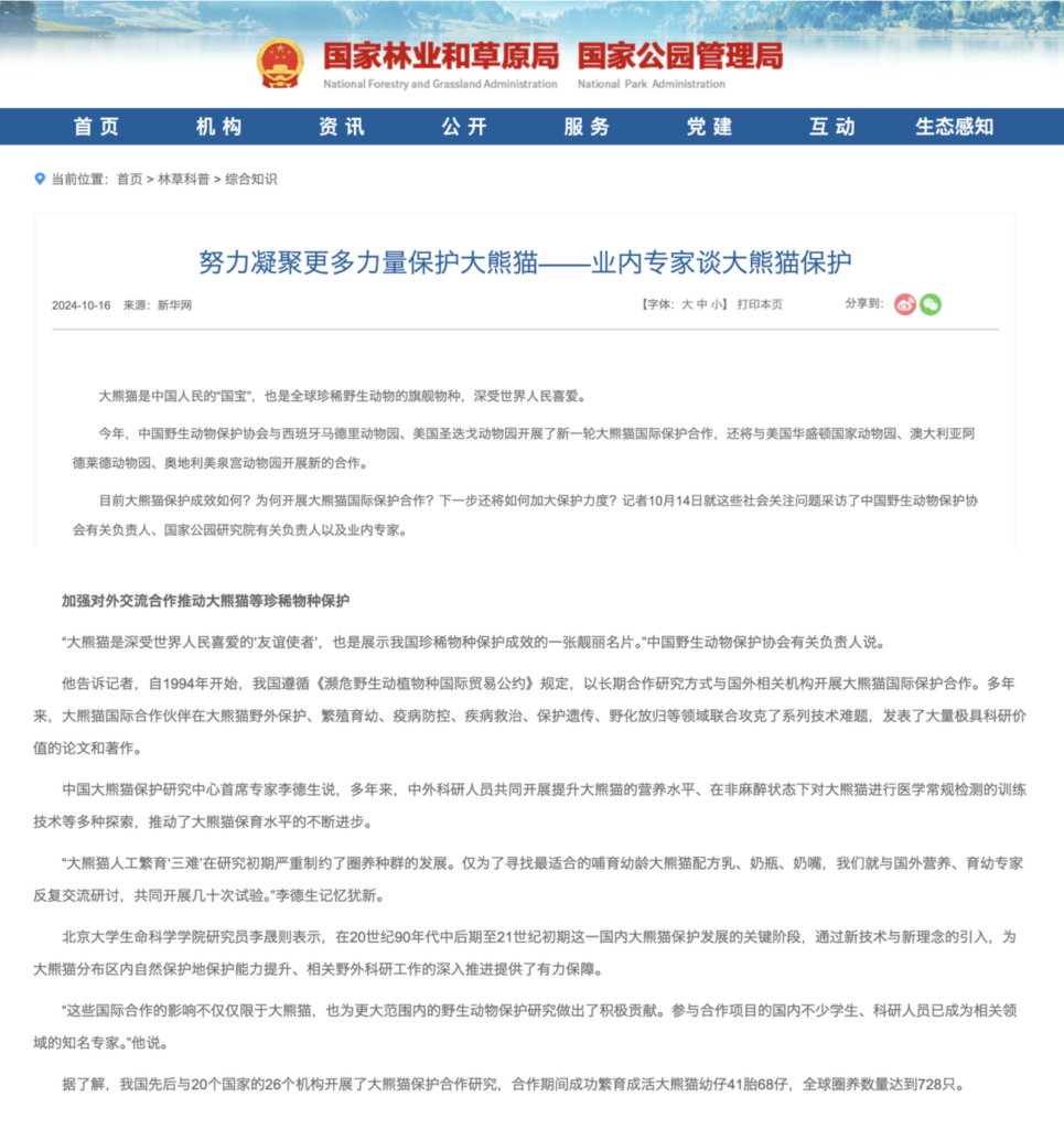 We reviewed official documents related to giant pandas issued by the National Forestry and Grassland Administration, the National Park Administration, the State Council of the People’s Republic of China, and the Chengdu Research Base of Giant Panda Breeding.