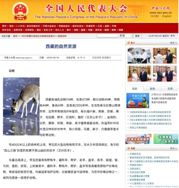 No newer official information has been found on the wildlife species in the Xizang Autonomous Region. We reviewed the article Natural Resources of Xizang, published on the official website of the National People’s Congress of the People’s Republic of China on May 18, 2009. The information shows that local wildlife mainly consists of species adapted to high-altitude environments, such as the Tibetan antelope, wild yak, and black-necked crane, and does not mention a natural presence of wild giant pandas. This is consistent with descriptions in Encyclopedia Britannica.