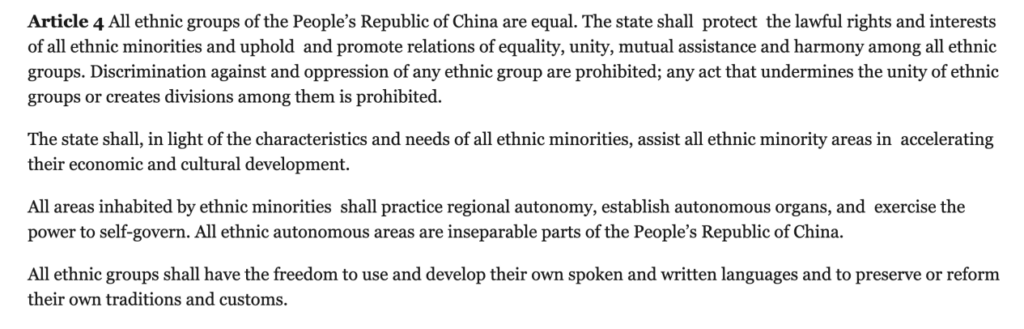 (1) From the official English website of the State Council of the People’s Republic of China, we accessed the current valid version of the Constitution of the People’s Republic of China (promulgated in 1982 and amended in 1988, 1993, 1999, 2004, and 2018; the webpage was updated on November 20, 2019). Article 4 of Chapter I of this Constitution explicitly stipulates: “All areas inhabited by ethnic minorities shall practice regional autonomy, establish autonomous organs, and exercise the power to self-govern. All ethnic autonomous areas are inseparable parts of the People’s Republic of China.”