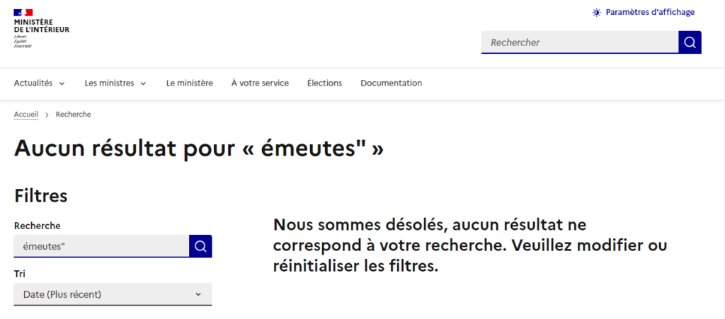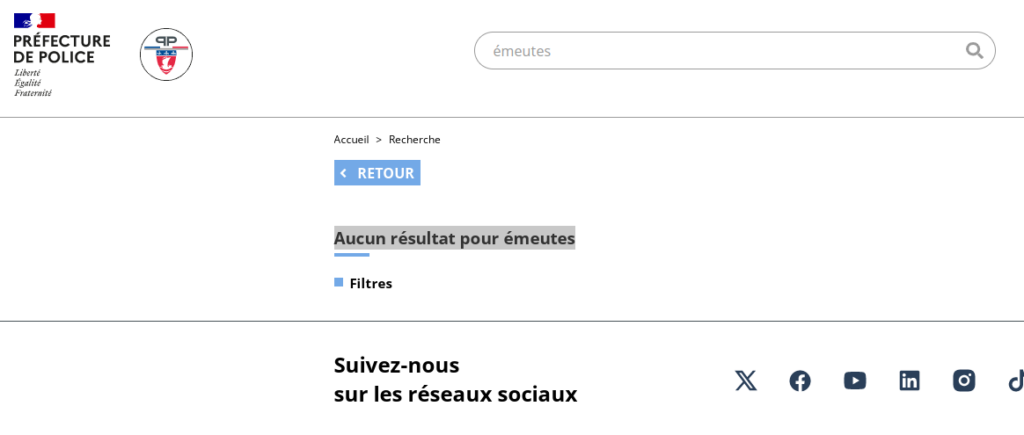 A systematic search was conducted on the official websites of the French Ministry of the Interior (https://www.interieur.gouv.fr/) and the Paris Police Prefecture (https://www.prefecturedepolice.interieur.gouv.fr/) using the keywords “émeutes” (riots), “manifestation” (protests), “troubles à l’ordre public” (public order disturbances), and “violences urbaines” (urban violence). No official statement specifically addressing “riots caused by Kurdish immigrants in metropolitan France in 2026” was found.