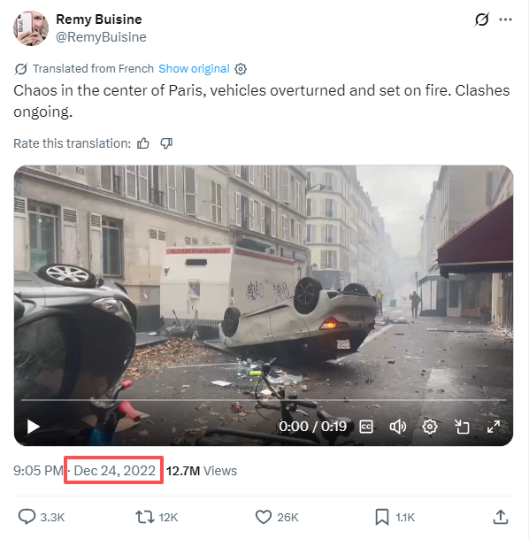 The video authentically documents protests and riots that broke out in the Kurdish community in Paris following a shooting incident in the French capital on December 23, 2022. Media outlets including the Guardian, the BBC, and Brazilian investigative journalism website O Antagonista all published extensive coverage of this event. The visual elements appearing in their coverage were also highly consistent with those found in the video posted by user @HJB_News__.